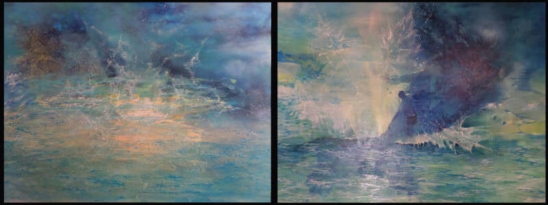 When water speaks (sold) - Reborn from water, both 170x110 cm, oil on canvas